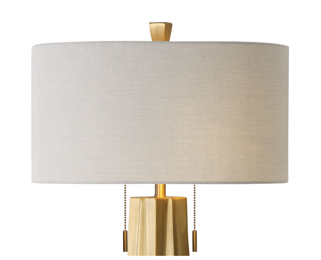 Product Description: Elevate your space with this stunning sculptural table lamp featuring a distinctive inverted star base crafted from shaped steel with an exquisite plated antiqued brass finish. The geometric star design creates dramatic visual interest while the light gray-beige linen drum shade provides soft, warm illumination perfect for any room.